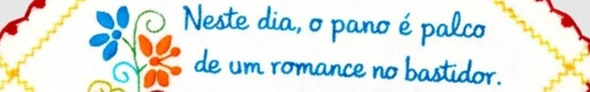 Atividade para adultos que propõe uma reinterpretação dos lenços dos namorados, com a técnica do bordado com motivos da arquitetura da casa da família Santiago.