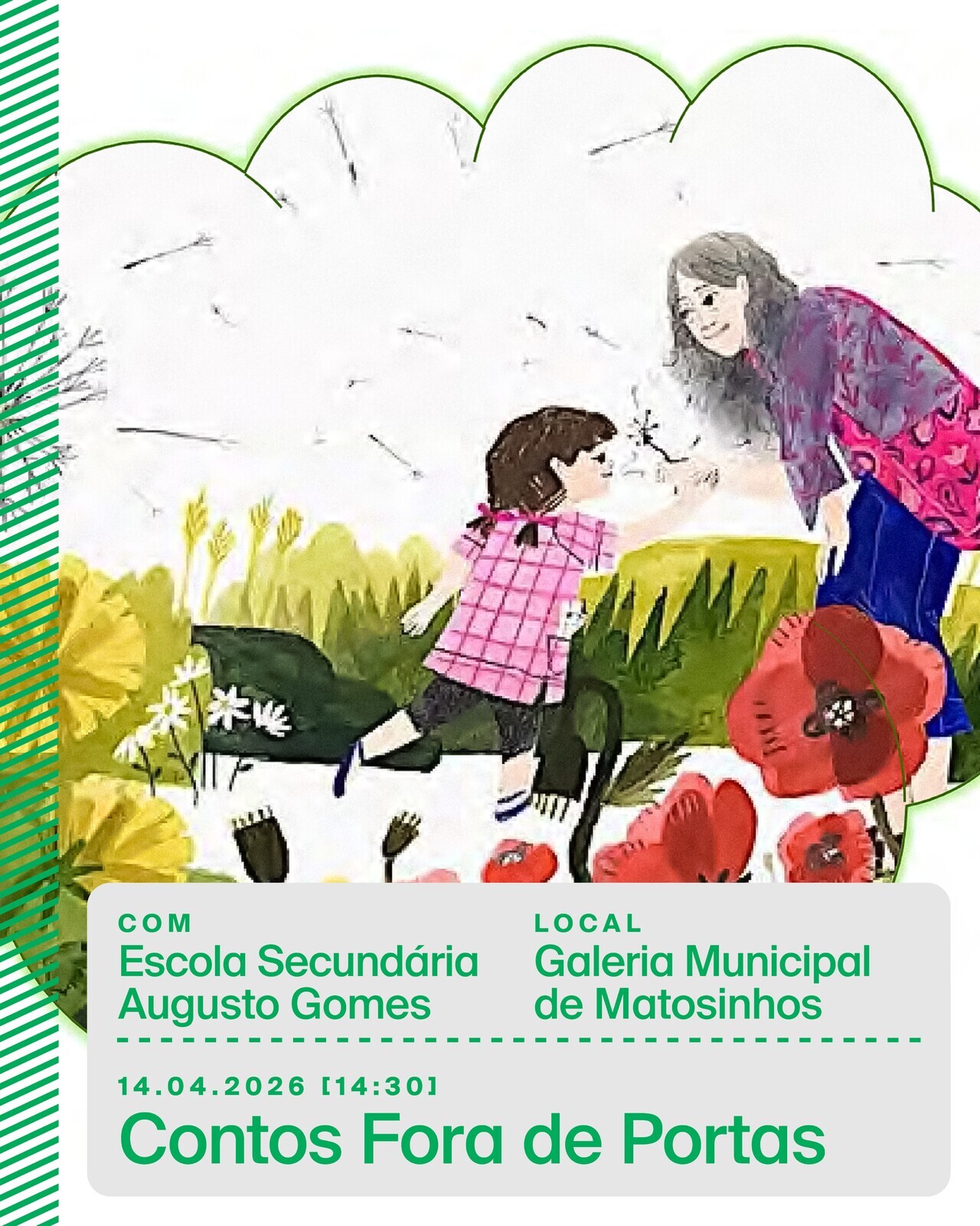 14:30 – «Contos Fora de Portas» com a Escola Secundária Augusto GomesO projeto «Contos Fora de Portas» junta alunos de duas escolas para ler e ouvir contos teatralizados e promover o diálogo sobre as histórias.