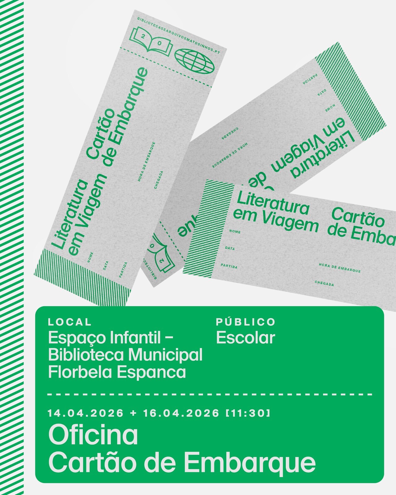 11:30 - Oficina “Cartão de Embarque”Nesta Oficina criativa, cada participante vai criar o seu marcador de livros personalizado, inspirado num bilhete de avião literário.
