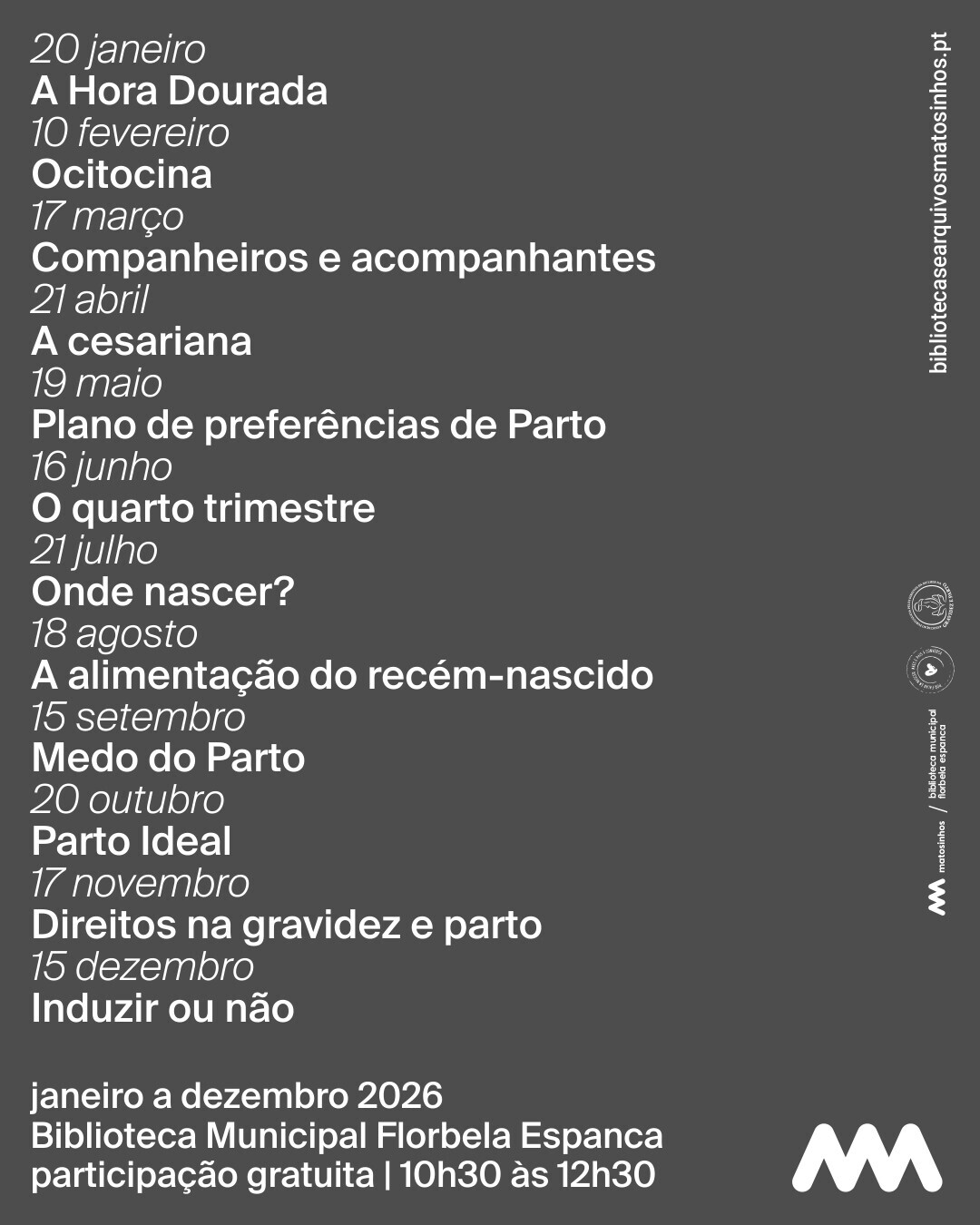 Em 2026, as Bibliotecas de Matosinhos dão continuidade à parceria com o movimento Por Falar em Nascer (PFN) Matosinhos, da Associação Portuguesa pelos Direitos da Mulher na Gravidez e Parto.