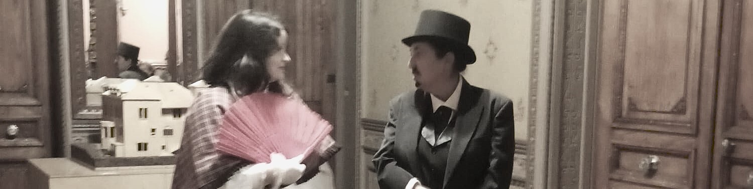 Assiduamente presentes nos encontros sociais dos Santiago de Carvalho e Sousa, Horácio e Carlota acompanharão os visitantes numa viagem pelas memórias do palacete, desvendando as suas características arquitetónicas e ornamentais.