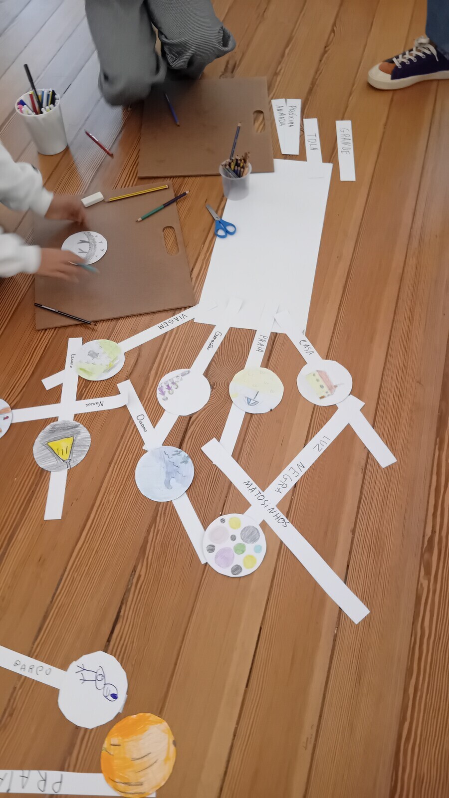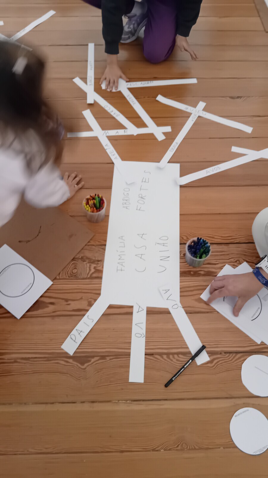 Colecionamos memórias, que foram ramos, as quais transportamos pelo Museu até ao momento de construir uma árvore e ilustrar essas histórias em postais, semelhantes a frutos: as árvores de todas as famílias formaram a FLORESTA DE MEMÓRIAS, da qual floresceram sorrisos, numa manhã de divertidas cumplicidades!